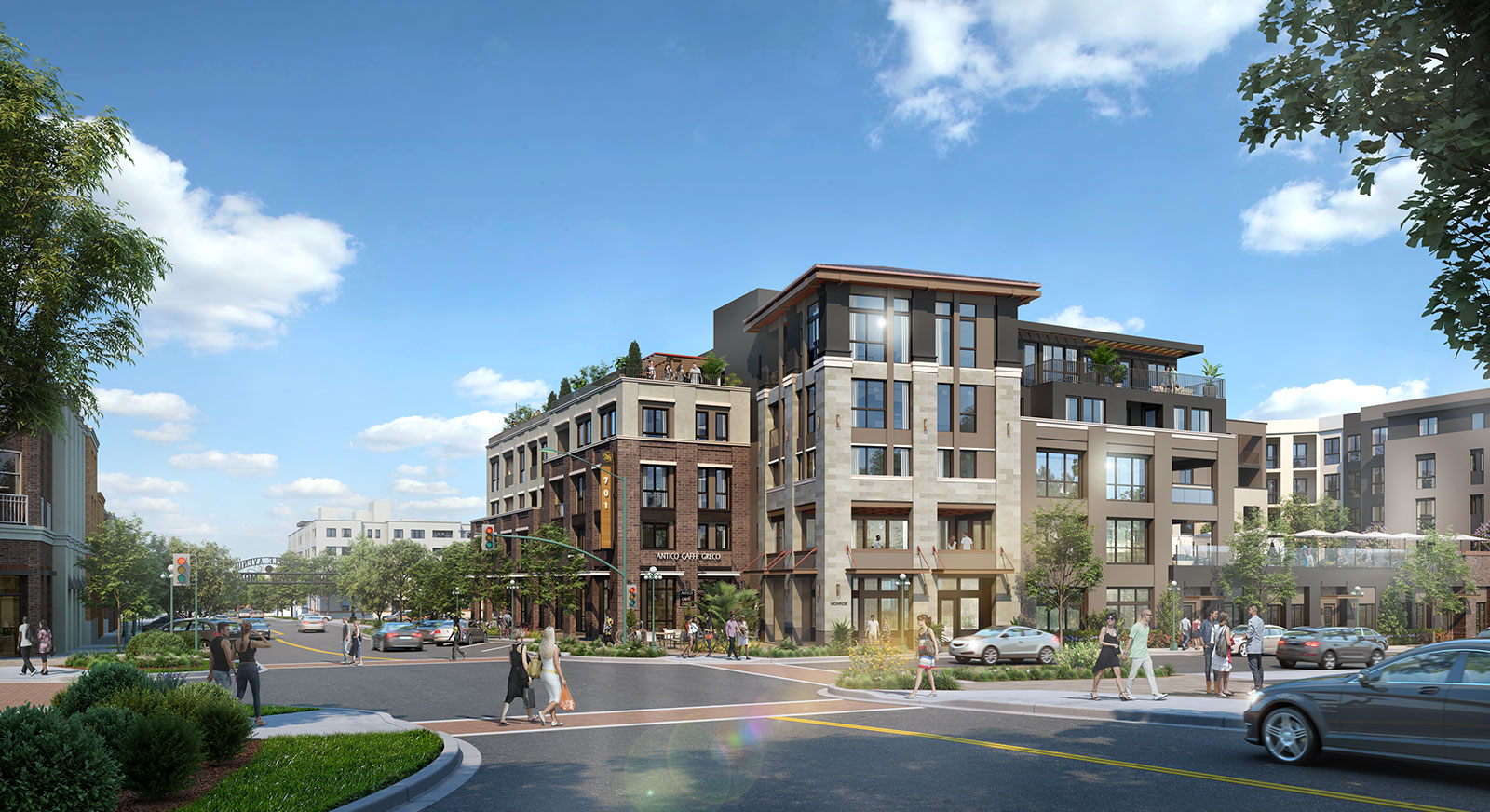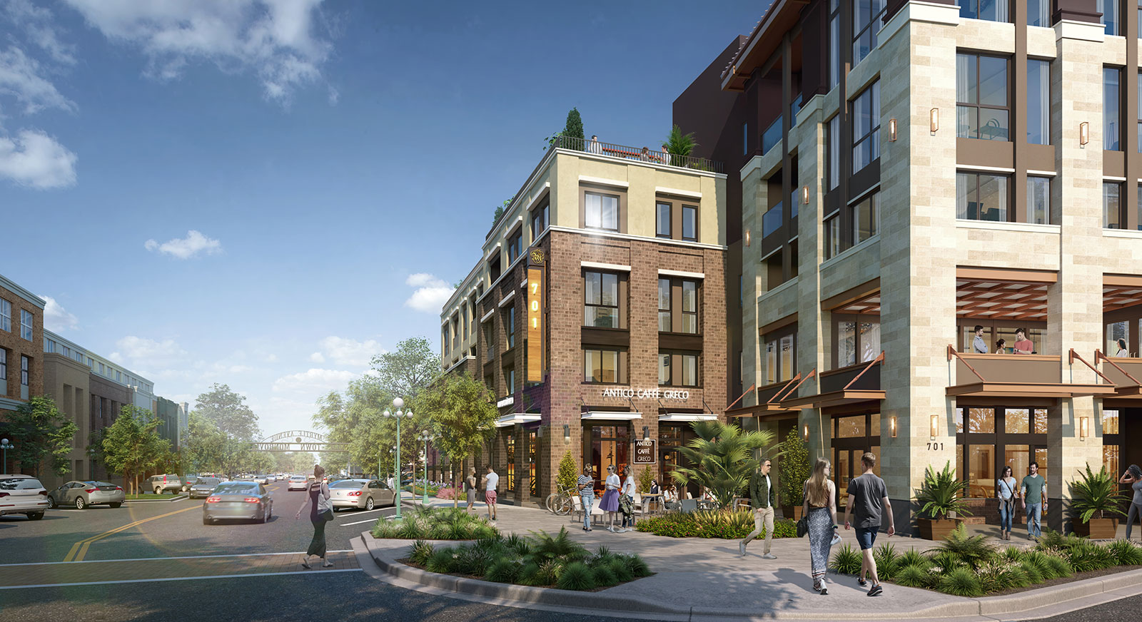 - Significant pedestrian improvements, including widened sidewalks and a public plaza